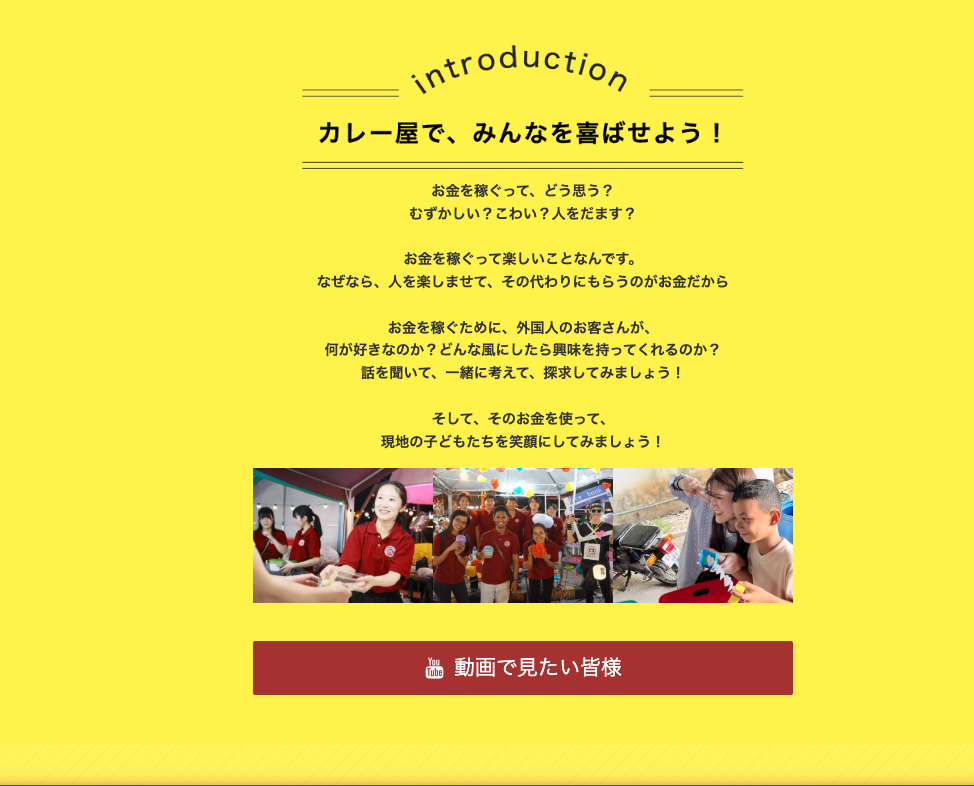 まずは、サムライカレーで、ビジネスと国際貢献の体験を積み、自分が将来やりたいことを見つけましょう!