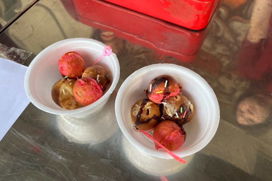 プログラムの中で特に印象に残っているのは、出店商品の企画と販売の経験です。最初は“たこ焼き”を販売しようと考えていました。手軽で利益率も高く、見た目のインパクトもある完璧な選択に思えました。しかし実際に試作してみると、スパイス文化に慣れた現地の人には味が受け入れられず、さらに必要な材料も揃わないという課題に直面してしまいました。悩んだ末、私は「ベビーカステラ」へと切り替える決断をしました。見た目はたこ焼きに似ていますが、甘くて親しみやすいスイーツです。