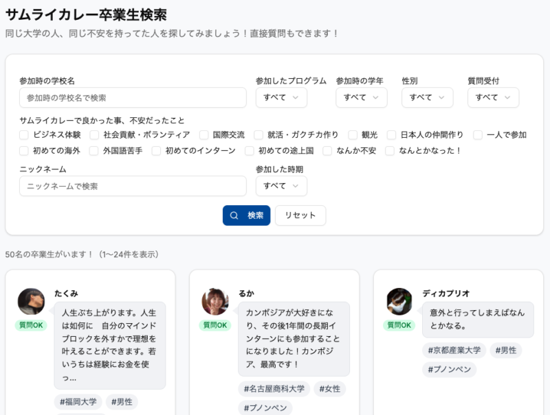 サムライカレー卒業生の体験談が検索できます!